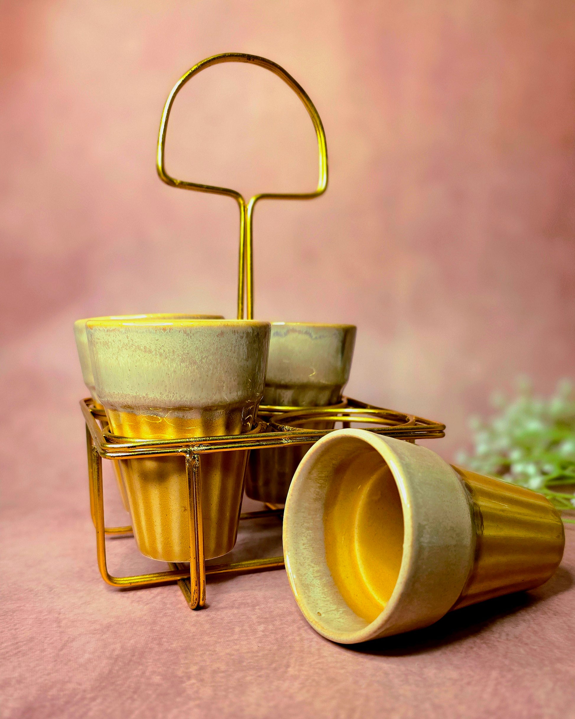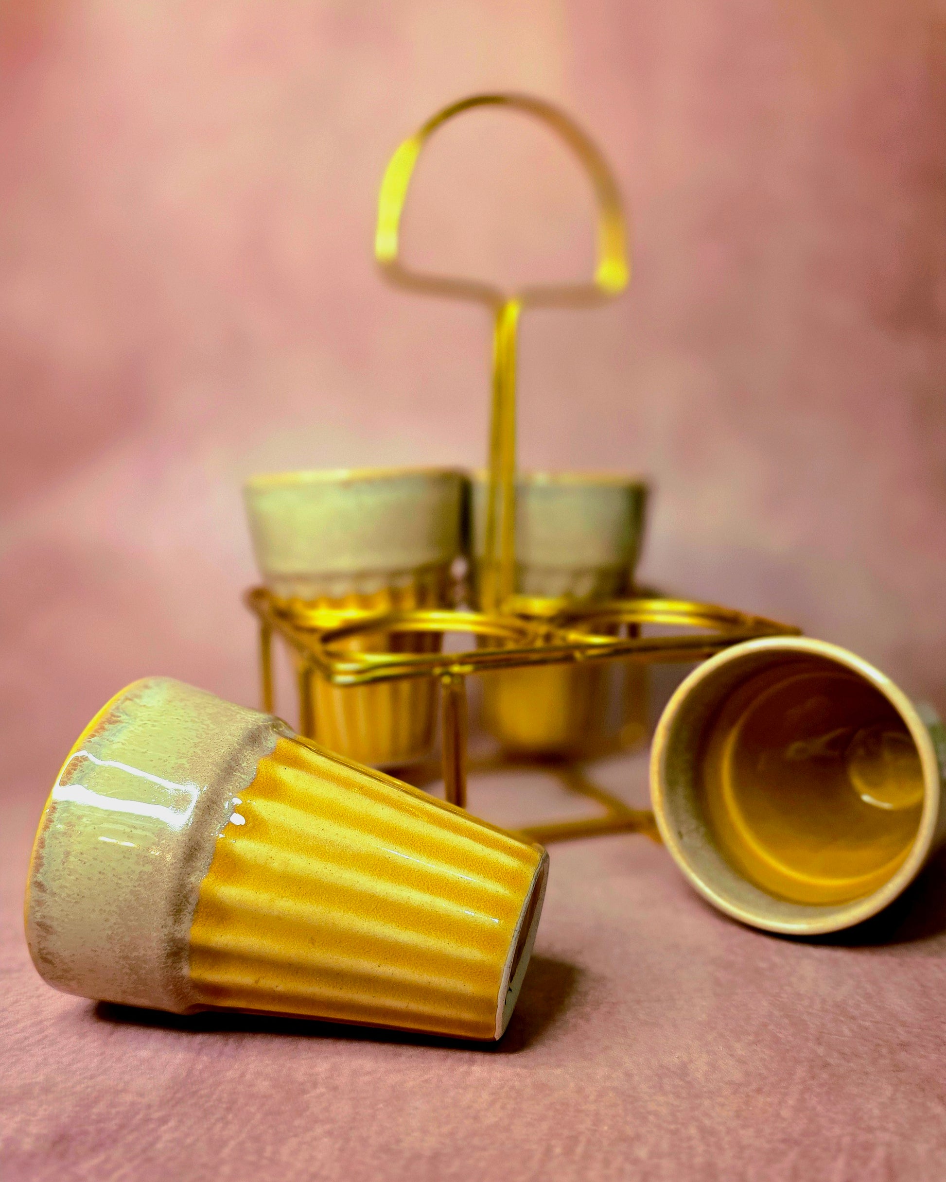 Our Chai Tapri Kullhad Set celebrates the timeless charm of India’s favorite chai vessel — reimagined in a luxurious golden glaze and paired with a sleek metal stand that adds a touch of elegance to your tea table. ☕️